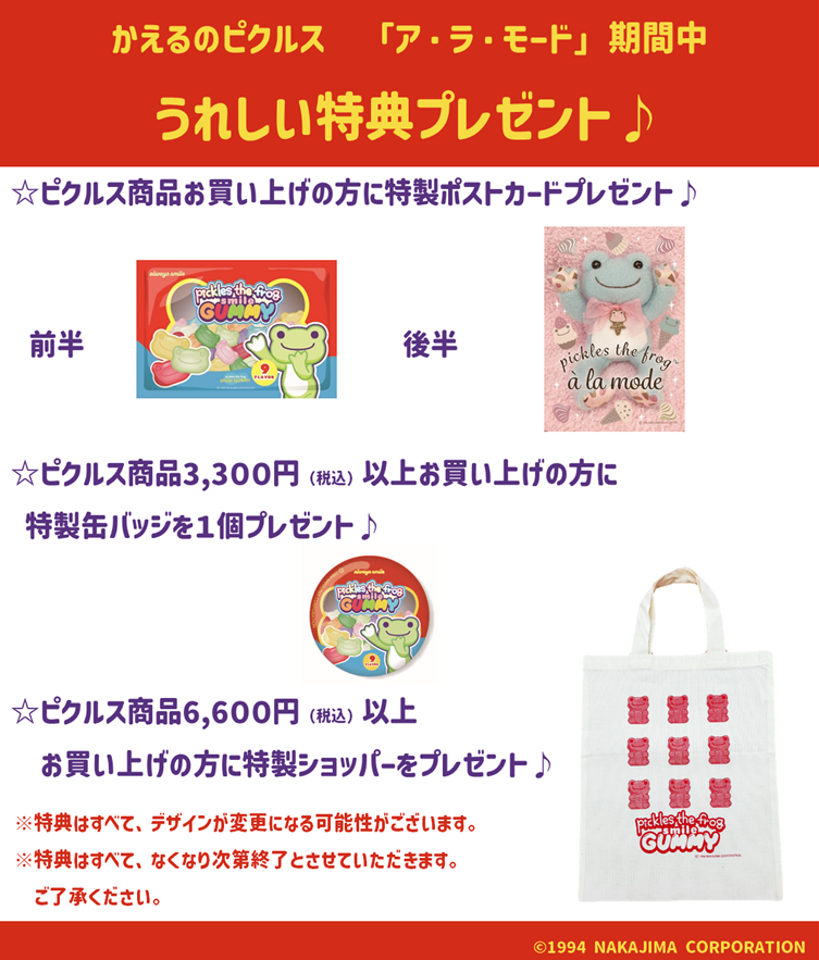 ピクルス商品をお買い上げの方に「ア・ラ ・モード」特製ポストカード(前半後半別柄)、